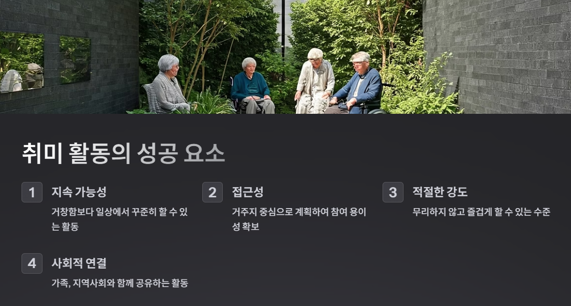 취미는 ‘하고 싶은 것’에서 출발하지만, ‘할 수 있는 것’으로 바뀌어야 합니다. 특히 시니어 시기에는 무리하지 않고 즐겁게 할 수 있는 활동이 장기적으로 삶의 질을 결정짓습니다.
