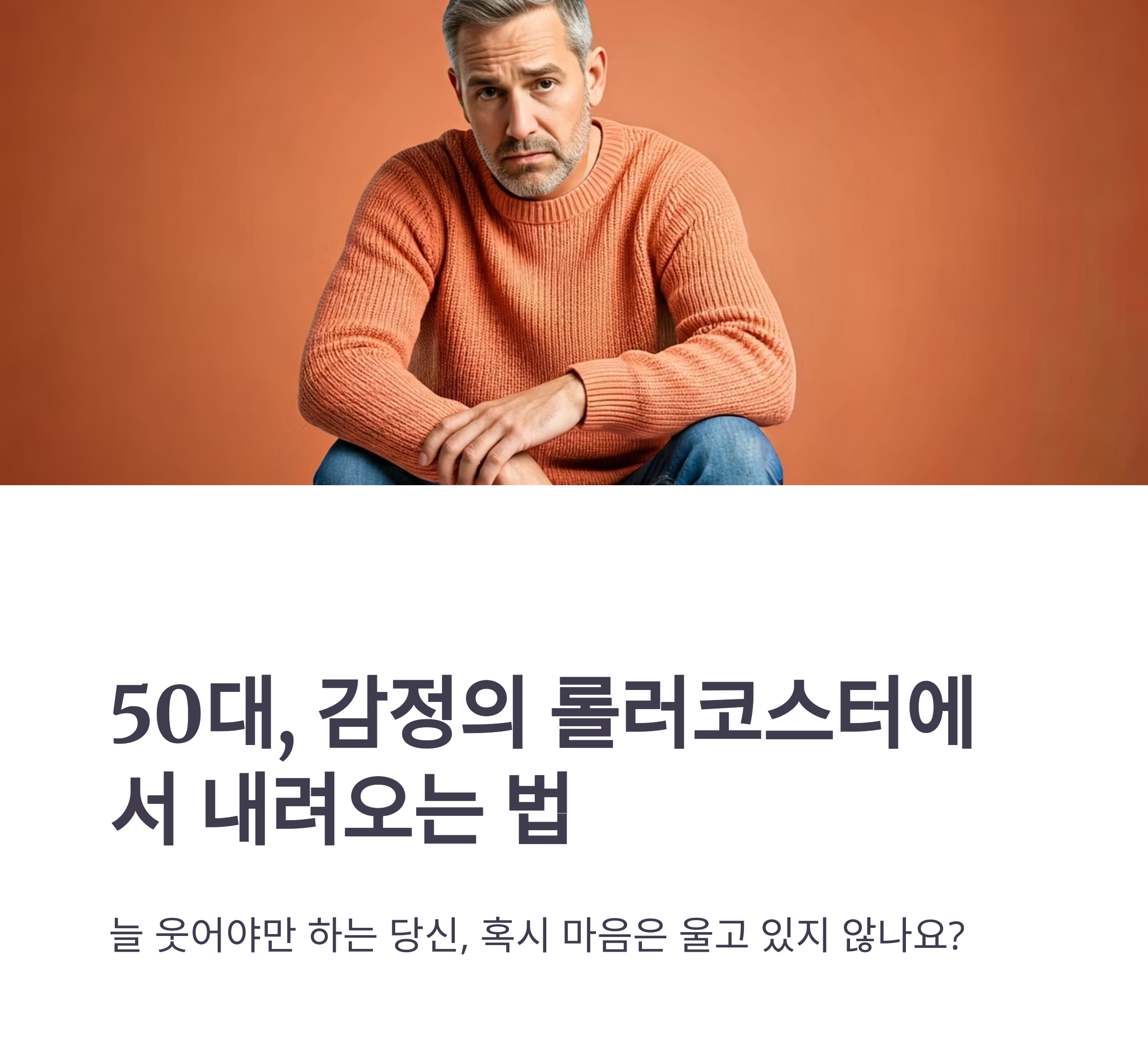 늘 웃어야만 하는 당신, 혹시 마음은 울고 있지 않나요? 중년의 감정노동, 이제는 나를 위한 감정 관리법으로 내면의 평화를 되찾을 시간입니다.